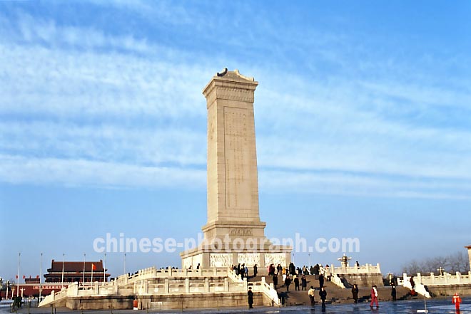 北京市/東城区/人民英雄記念碑/1840年のアヘン戦争以来、革命のために犠牲になった人びとの功績をたたえる碑/天安門広場/世界最大の広場/建築物