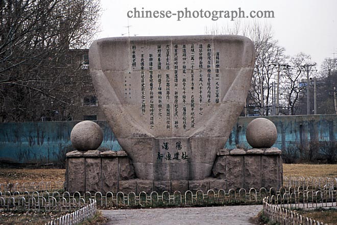 遼寧省/瀋陽市/新楽遺址/遺跡/約7200年前の新石器時代の遺址。地層は上・中・下層にわかれ、とくに下層からは原始母系制社会における集落居住址が発見され、数多くの磨棒・突状器・石鏃などの考古品が出土した。黄河流域の仰韶文化、長江流域の河姆渡文化にならぶ北方新石器時代の遺址として注目されている