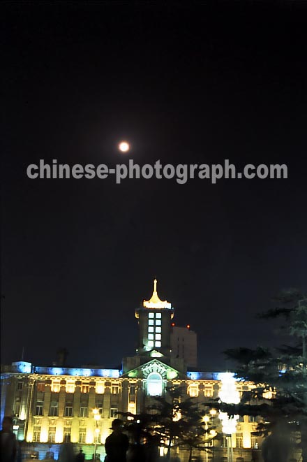 遼寧省/大連市/中山広場の夜景/建築物/ナイトスポット/月
