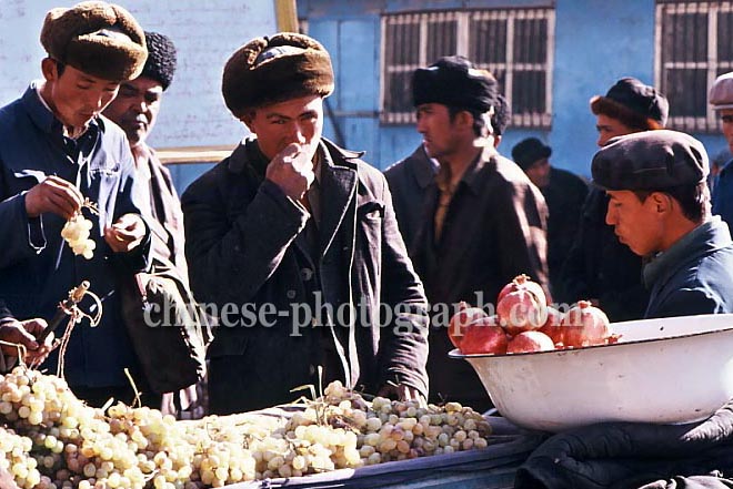 新疆ウイグル族自治区/カシュガル市/カシュガル地区/果物売場/八百屋/料理/飲料水/食材/レストラン