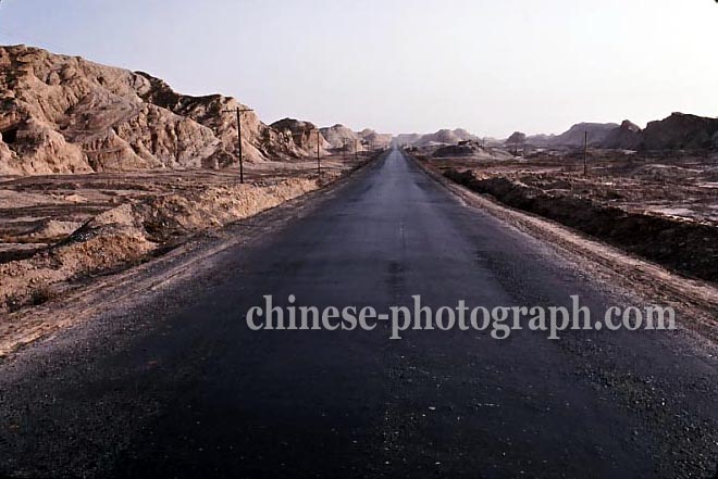 新疆ウイグル族自治区/キジルへの途中の道/道路/シルクロード/キジール/自然風景